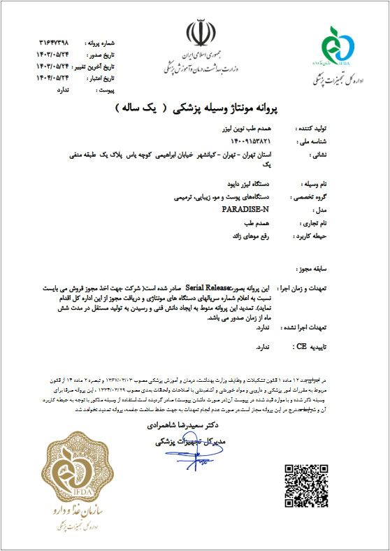 شرکت همدم طب نوین لیزر برای رفاه حال شما کاربران عزیز، کاتالوگ محصولات خود را با کیفیت عالی و حجم پایین (حدود 2 مگابایت) در این قسمت قرار داده است. با دانلود این کاتالوگ، می توانید به راحتی و برای همیشه به تمام مدل ها و مشخصات فنی دستگاه های این شرکت دسترسی داشته باشید و آنها را مطالعه کنید.